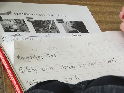 英語は、5年生になると書くことも求められます。少しずつノートに書く練習をしています。