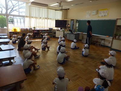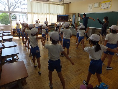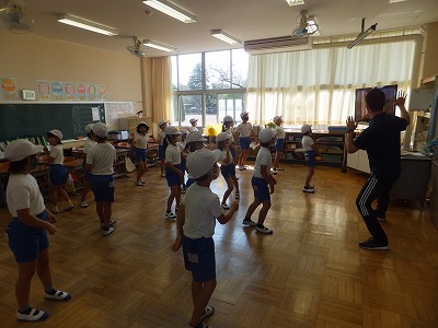 今日は教室で、運動会の表現の練習をテレビを見ながらしました。