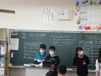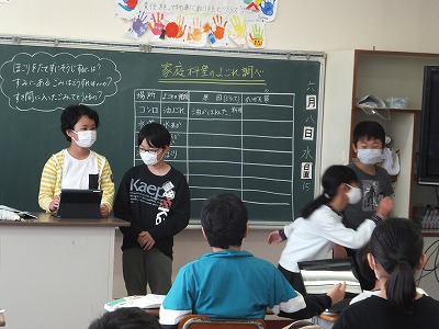 今日の家庭科は、自分でできることが増えたか、1年間を振り返りました。