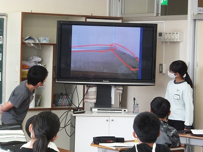見学に来た3年生には、6年生が説明しています。