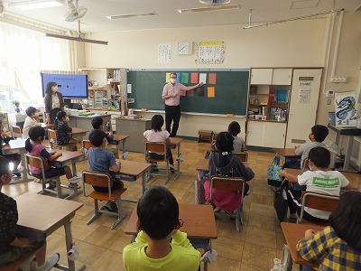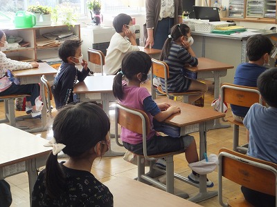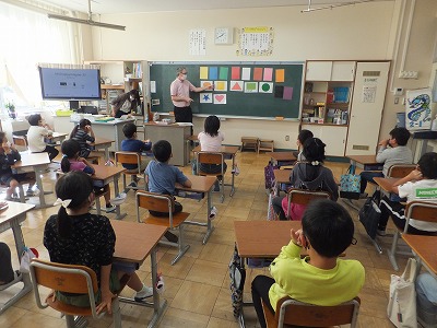 英語で、色や形、数字の言い方について学習しました。発音の仕方について、一つ一つ丁寧に確認しました。
