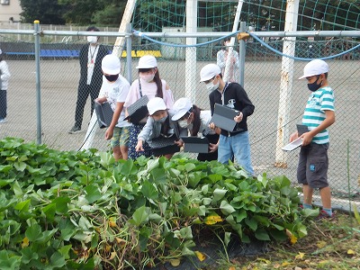撮った写真を共有したり、知らない昆虫を見つけたら、何という昆虫か調べたりして、学習を広げていきます。