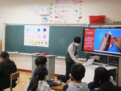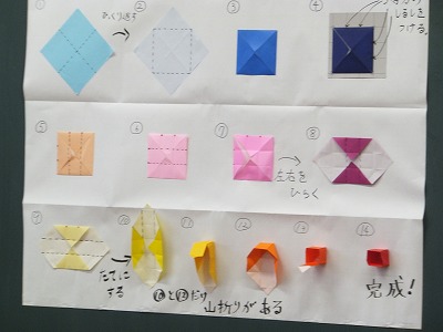 折り紙は、頭の中での空間認識を養うのに効果的です。簡単な折り紙のようですが、実際に折ると、苦労している子が結構いました。