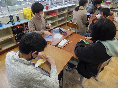 今日は、立方体の体積の復習をするために、折り紙で立方体を作りました。