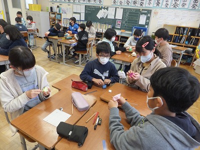 図工で作ったランプをみんなで一斉に点灯してみました。