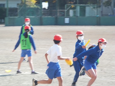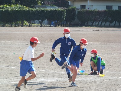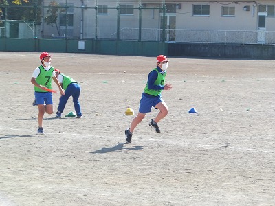 今日の体育もリレーの練習です。練習のたびに上手になってきました。