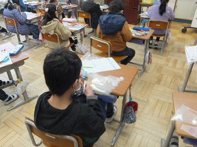 今日の家庭科は、自分でできることが増えたか、1年間を振り返りました。