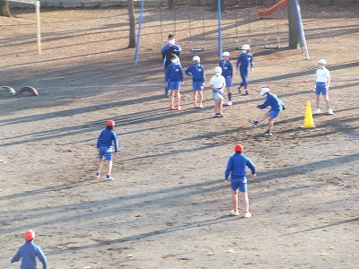 遊びながら、サッカーに近づけています。