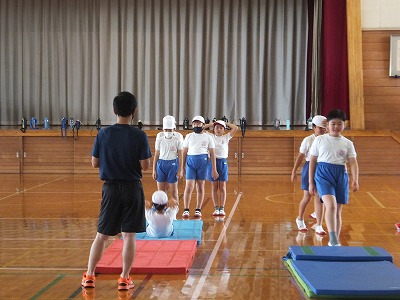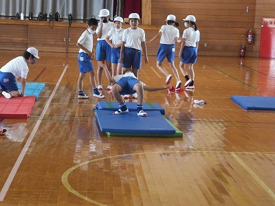 グランドコンディションが良くなかったので、体育館でリレーをしました。