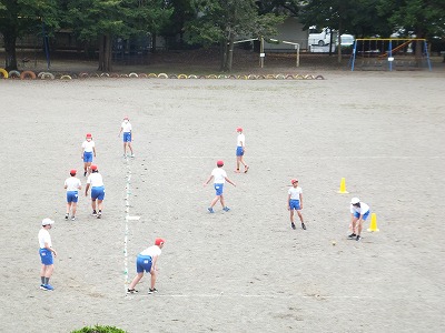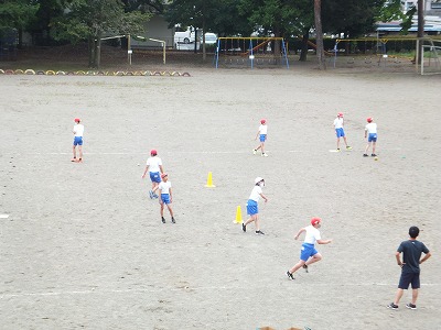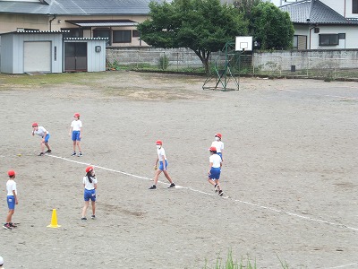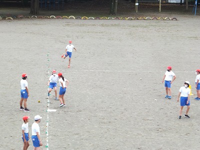 今日の体育は、ベースボール型ゲームの基礎練習です。