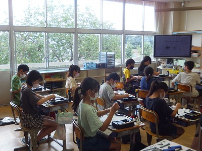 版画もいよいよ刷りに入りました。終わった子は、デザインをやっています。