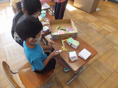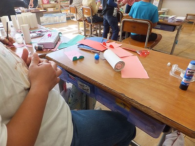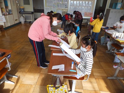 宝は、子供たちが折った折り紙です。教室のいろいろなところに隠しました。