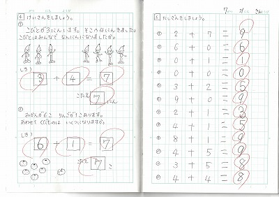 お家の方に問題を書いてもらったようですが、1冊しっかりとがんばりました。漢字の練習もやってありました。1年生のノートは初めてです。