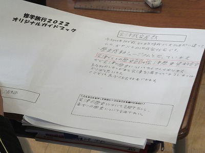 修学旅行の見学先を自分で調べて、自分だけのガイドブックを作りました。