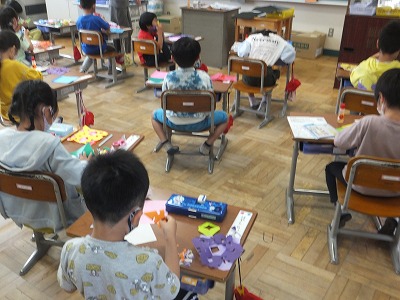 輪ゴムを鳴らすので、いい音とまではいきませんでしたが、自分の作った楽器で嬉しそうに音を出していました。