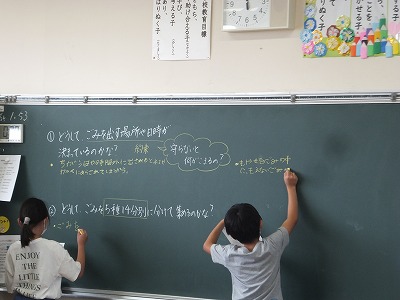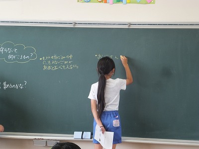 ワークシートに書いたあと、黒板に振り返りを書きました。