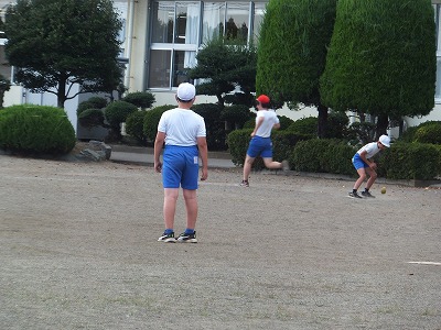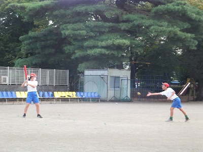 まだ、下手投げで打ちやすいボールを投げている段階です。