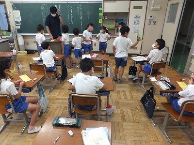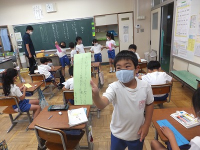 宝は、子供たちが折った折り紙です。教室のいろいろなところに隠しました。