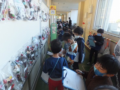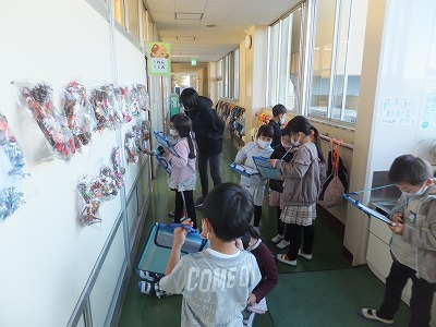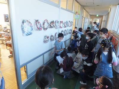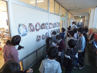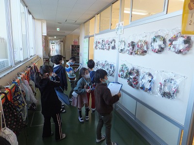 今日は、昨日作ったリースの振り返りと友達の作ったリースの良いところを見つけました。まずは、自分の反省を書いた後、友達のリースの鑑賞です。