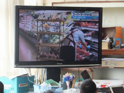 本来ならスーパーマーケットに見学に行って、直接自分の目で見て、スーパーマーケットの工夫を見つけるのですが、コロナでそれができません。代わりにテレビを視聴して工夫を見つけていきます。