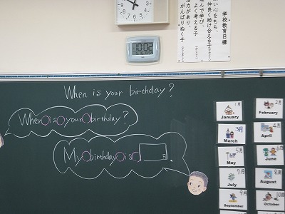 誕生日を尋ねたり、それに対して答えたりする練習をしました。