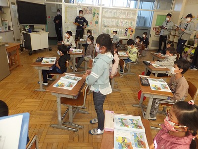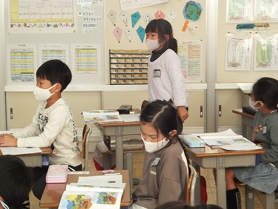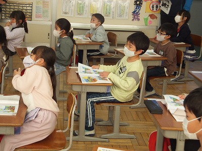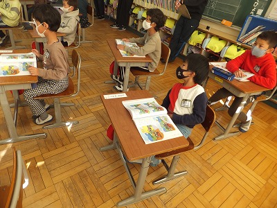 場面を見せながら、子供たちに話の内容をとらえやすくしました。