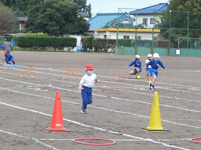 遊びながら、サッカーに近づけています。