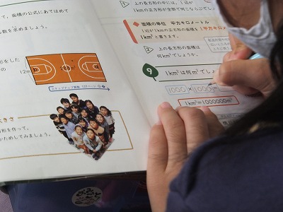 面積の単位である㎠や㎡については学習しましたが、今日は㎢について学習しました。