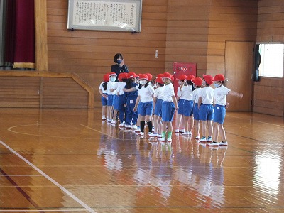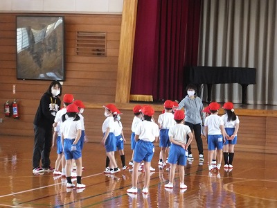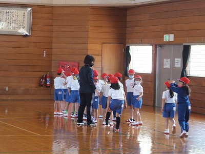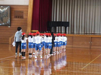 身体計測が終わったので、背の順での並び方の練習をしました。