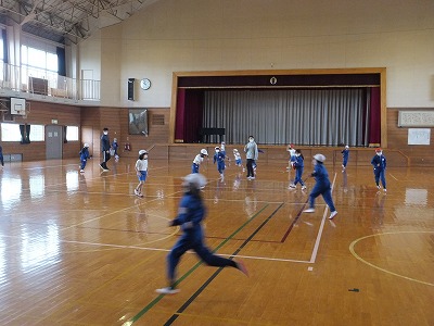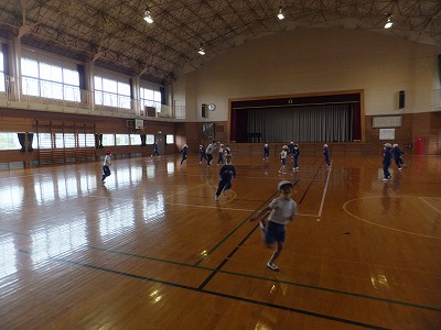 雨が降っていたので、体育館で鬼ごっこをしました。