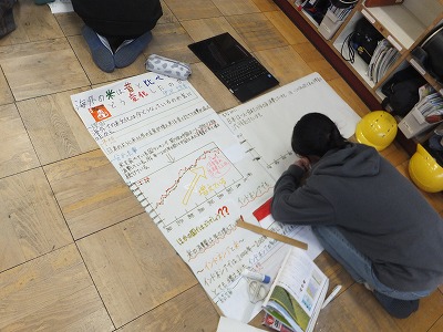 明日は、上野長一さんがいらっしゃるので、子供たちは長一さんに聞いてもらおうと、頑張ってまとめています。