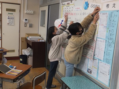 退職する校長にとって最後の儀式となりました。修了式後に、5年生の代表に、今までの講話等で印象に残っていることなどとともにはなむけの言葉をいただきました。5年生ありがとうございました。5年生のしっかりしている姿を見て、安心して退職できます。本郷北小学校をよろしくお願いします。