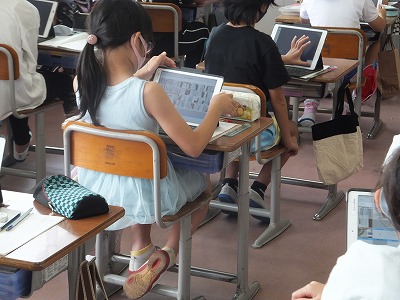 タブレットを使うことにより、自席に居ながら友達のノートを読むことができます。