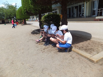 理科の時間は、4月に撮影した木の変化の様子を調べています。
