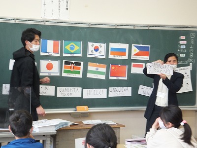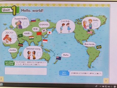 外国語の時間に世界の国の「こんにちは」について学習しました。