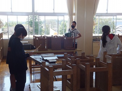 輪ゴムを鳴らすので、いい音とまではいきませんでしたが、自分の作った楽器で嬉しそうに音を出していました。