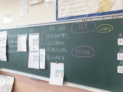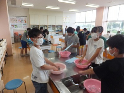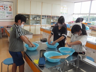家庭科で、洗濯板を使って靴下を洗いました。