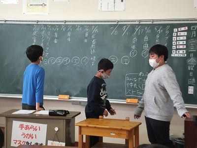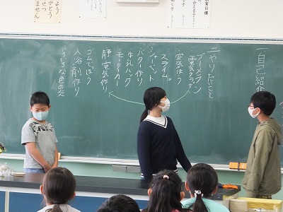 ワークシートに書いたあと、黒板に振り返りを書きました。