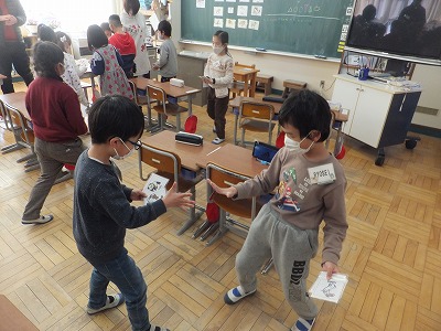 1組は、お楽しみ会で、「逃走中」をやりました。