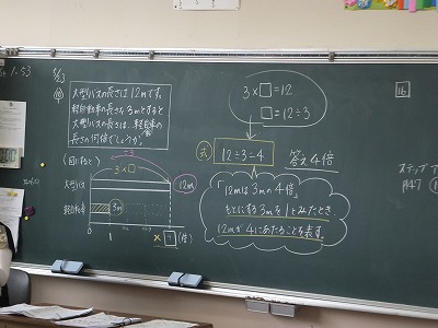 今日は、2組が拡大図と縮図のかき方について学習しました。