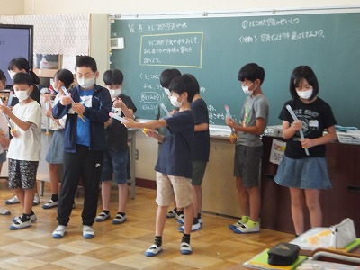 ワークシートに書いたあと、黒板に振り返りを書きました。