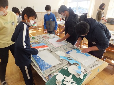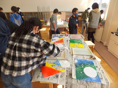 「ひびき合う形と色を求めて」という単元で、スチレンボード版画にチャレンジしています。