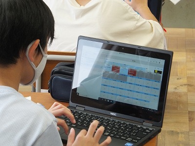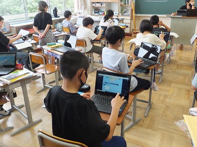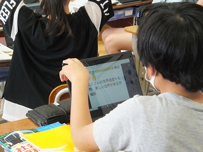 友達の作品は、手元のタブレットでも見ることができます。発表が苦手な子でも、自分の考えを発信できるツールとして、有効にタブレットを使っています。