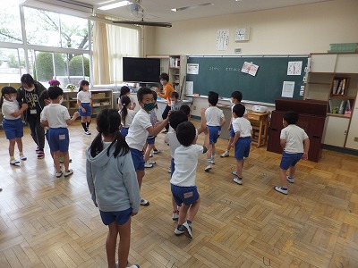 なかなか大きな声で歌は歌えませんが、体を動かして、みんな楽しそうです。