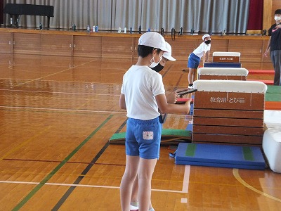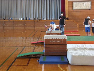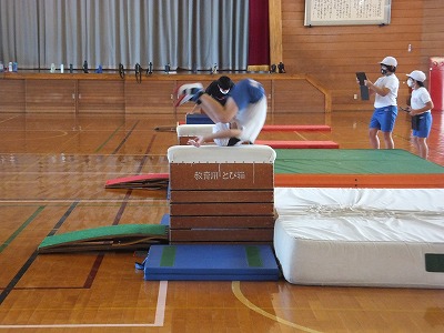 グランドコンディションが良くなかったので、体育館でリレーをしました。