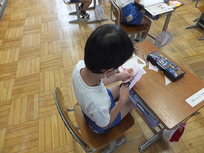 昨日は、いろいろな形を紙に写しましたが、今日はそれを切り取って・・・。