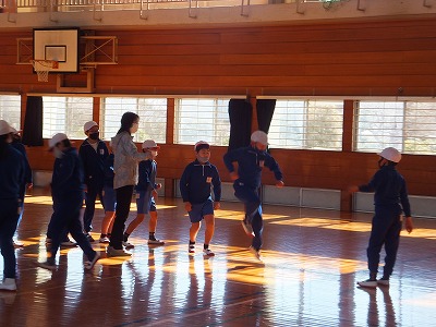 グランドコンディションが良くなかったので、体育館でリレーをしました。