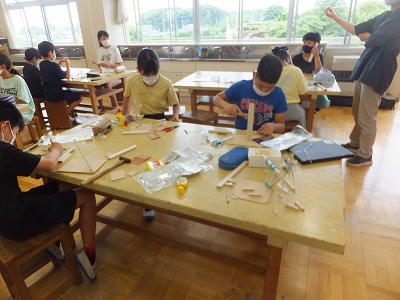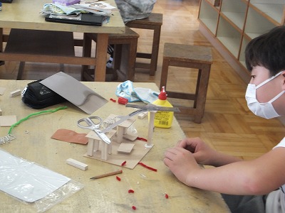 今日の図工は、「木と金属でチャレンジ」です。