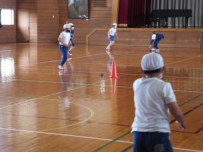 投げることよりもキャッチの方が難しいですが、上手にキャッチできている子が多かったです。