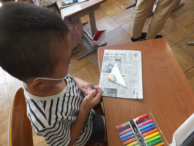 四つ折りにした後、さらに半分に折っている子もいます。